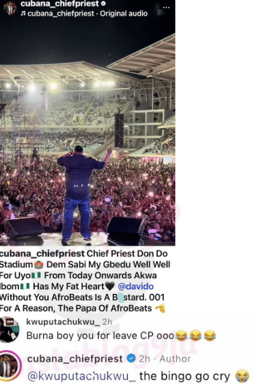 One netizen had taken to the comment section to react, saying that Burna Boy should never have tried Cubana Chief Priest.