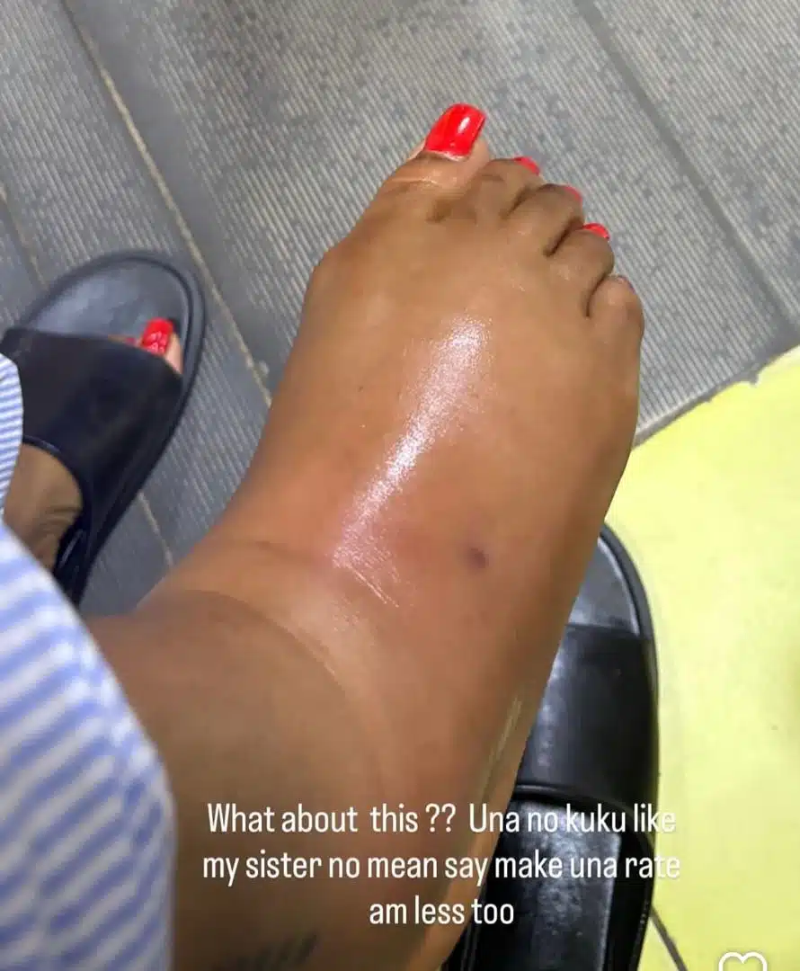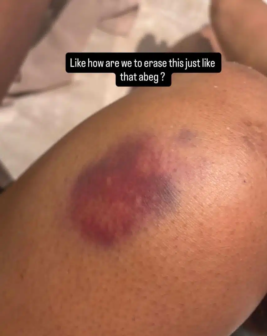 The images, which quickly went viral, showed visible marks on her thigh and leg, stirring fresh reactions online.