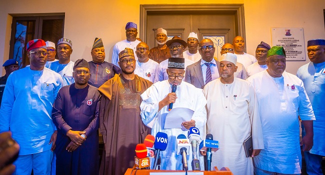 Latest NewsTwo PDP Governors From Northern Nigeria Set To Join APC Last updated: November 1, 2025 11:07 am Dailytrend Share 0 Min Read Breaking: Two PDP Governors From Northern Nigeria Set To Join APC HomePoliticsBreaking: Two PDP Governors from Northern Nigeria Set to Join APC Police, Military Team Up To Rescue Kidnapped Kebbi Deputy Speaker Top Kaduna Senator Leaves PDP For APC Super Eagles Get Playoffs Boost As Key Midfielder Returns From Injury Drama As Omoge Saidat Meets Billionaire Family In Secret After Leaked Private Video — What Really Happened President Samia Suluhu’s 97% Election Win Sparks Deadly Protests Across Tanzania Share This Article Facebook Whatsapp Whatsapp LinkedIn Reddit Threads Bluesky Previous Article Nigerian Resident Doctors Declare Indefinite Nationwide Strike — Hospitals Shut Down Across The Country Next Article Barcelona Make Surprise Move For Arsenal Midfield Star Latest News Rear Admiral Abdullahi Ahmed Appointed Commandant Latest News November 1, 2025 Bandits Kill Influential Pastor, Kidnap Church Members In Brutal Attack Latest News November 1, 2025 Atiku’s Strategy To Defeat Tinubu Revealed Latest News November 1, 2025 Peju Ogunmola Speaks Out After Tragic Loss Of Only Son Ayomikun Latest News November 1, 2025 2025 Mercedes-Benz GLE 350 Stolen At Gunpoint In Victoria Island – Police Launch Manhunt Latest News November 1, 2025 Jarvis Tells Peller ‘It’s Too Late To Break Up’ – Relationship Drama Unfolds Latest News November 1, 2025 How FCT Court Sentences Teacher To Life Imprisonment For Raping 9-Year-Old Girl Latest News November 1, 2025 US Senator Proposes Bill To Sanction Sharia Law Enforcers Amid Alleged Christian Persecution In Nigeria Latest News November 1, 2025 Sowore Responds To Trump Labeling Nigeria As A ‘Country Of Particular Concern’ Latest News November 1, 2025 Wike Holds Strategic Meeting With PDP Allies Ahead Of Party Convention Latest News November 1, 2025