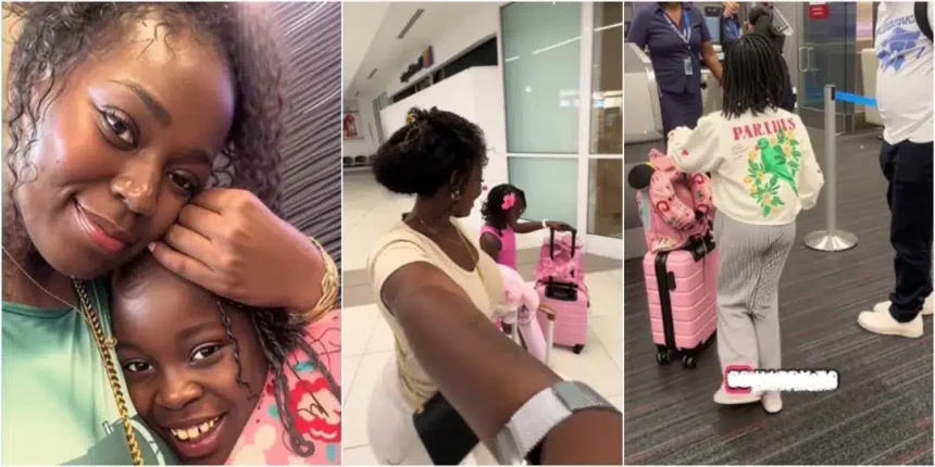 A mother has stirred mixed reactions online after sharing a video of her six-year-old daughter traveling alone on a plane to London.